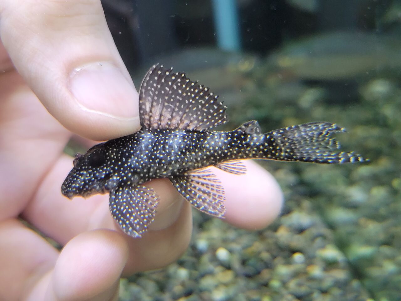 ⭐ブラジル原産の小型プレコです!黒地に細かいスポットが無数に入ったまさに星空の様な模様のプレコです✨スポットの大きさなどはバリエーションがあります!